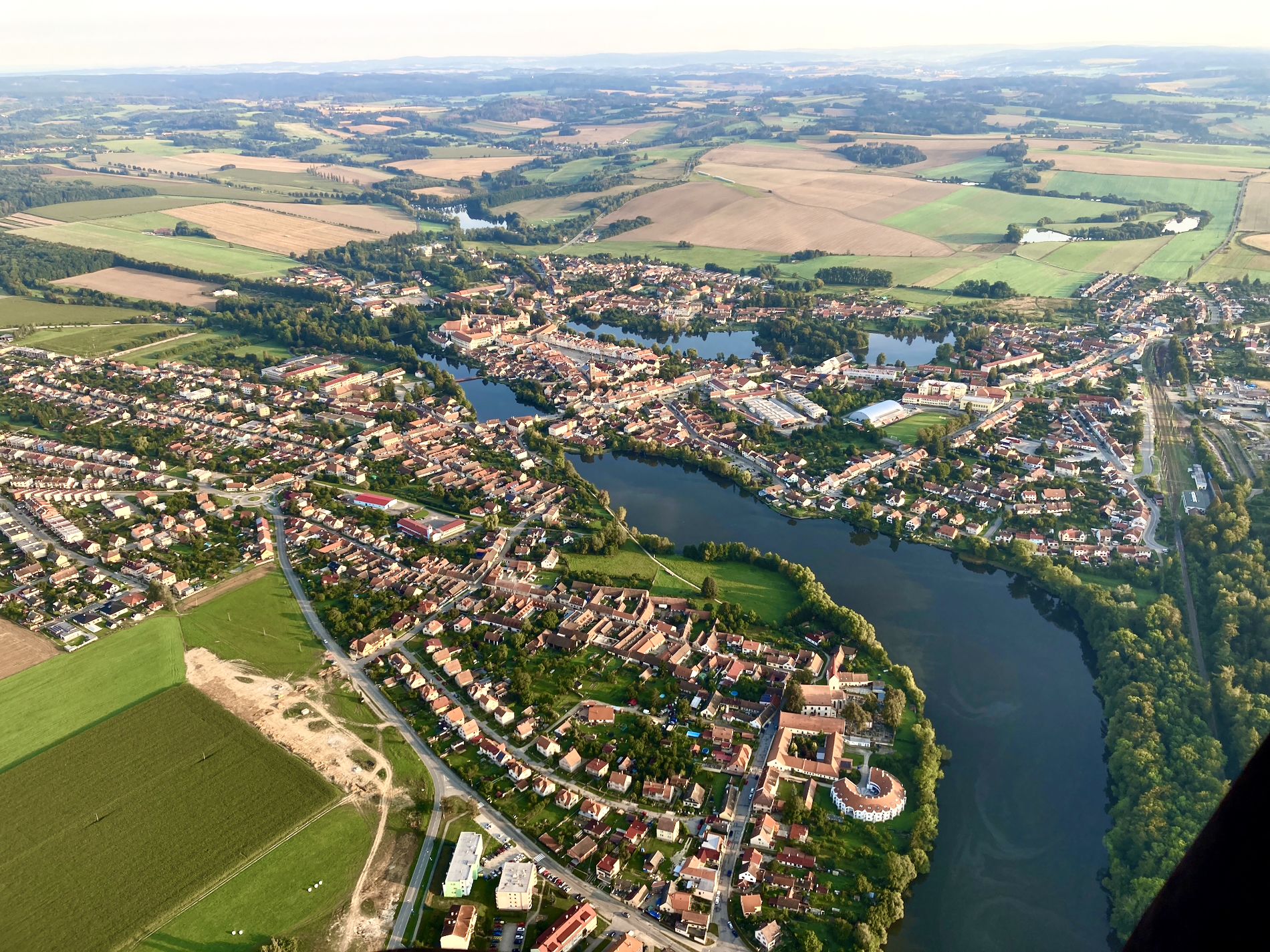 Vyhlídkový let přes historické město Telč nabízí nevšední pohled na známá i neznámá místa.